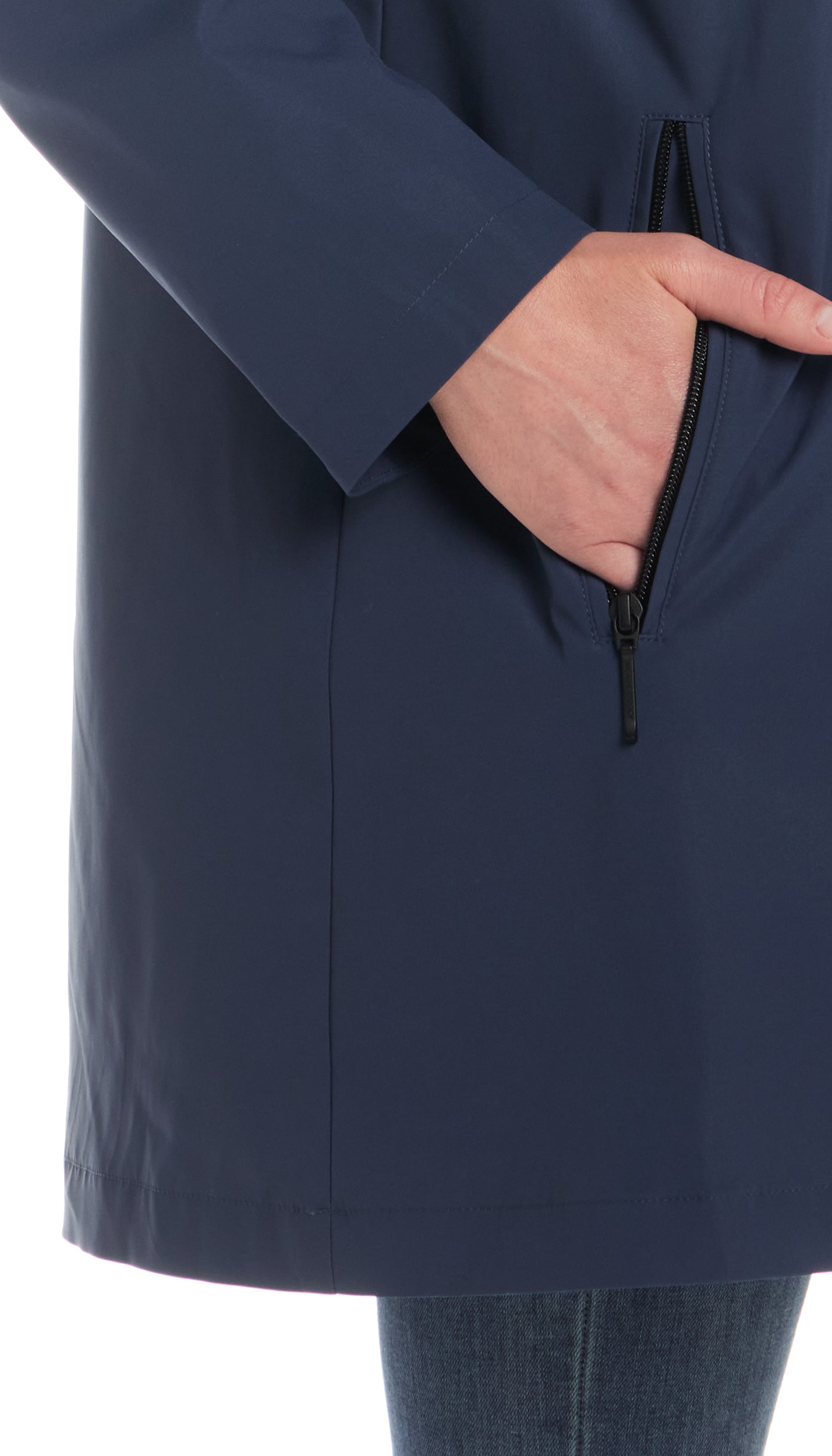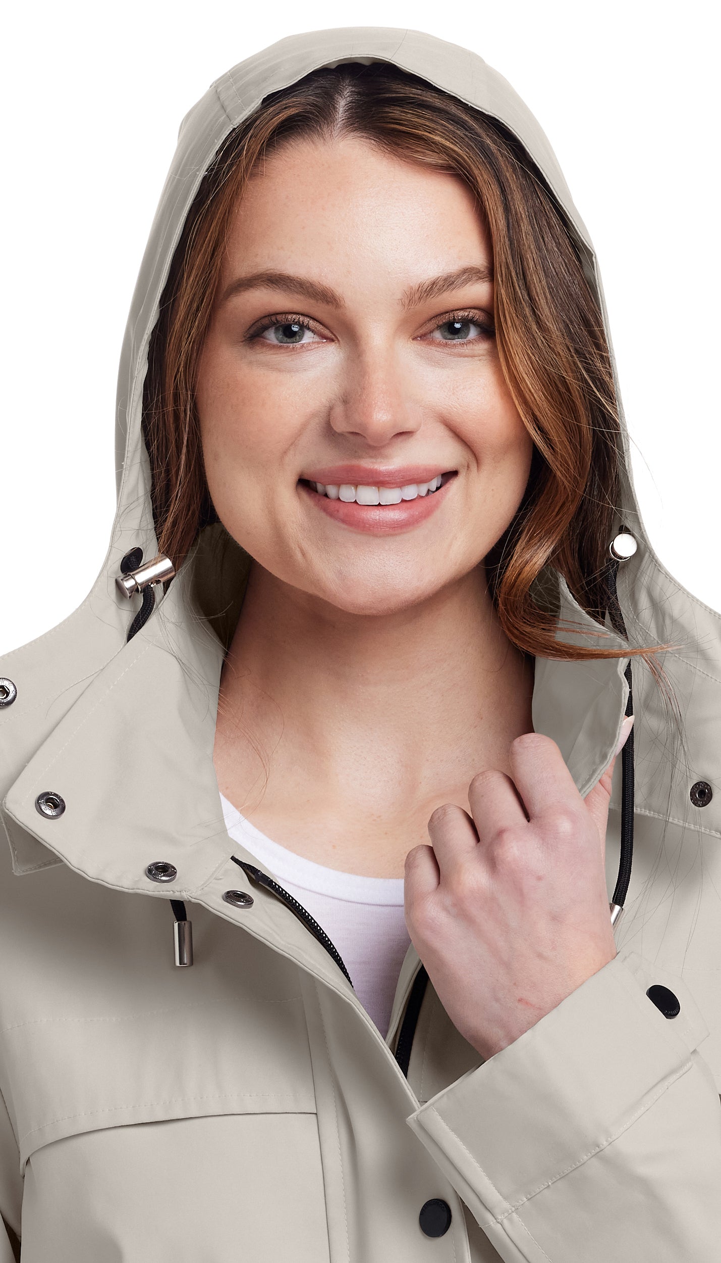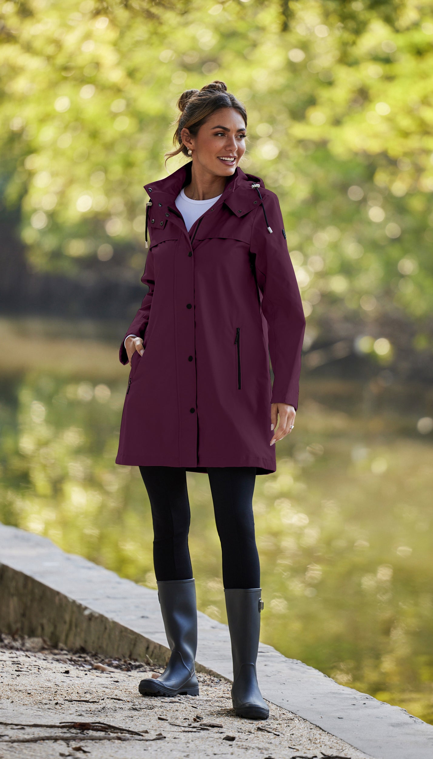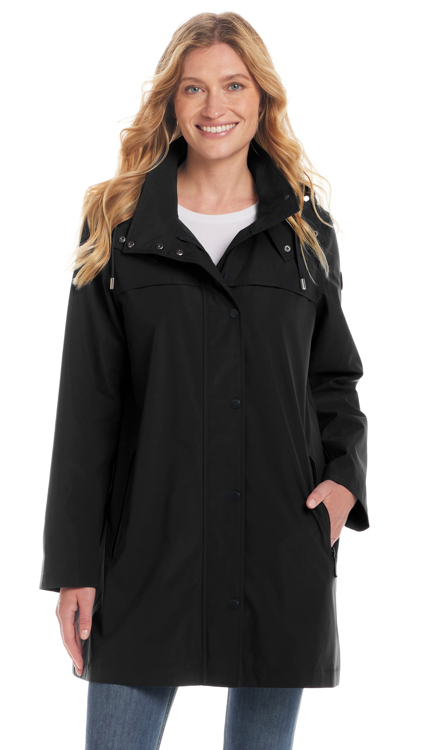 The snap-and-zip front ensures a secure fit. while the easy A-line silhouette makes layering effortless. Practical. polished. and perfect for any rainy day!
